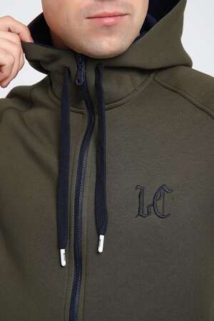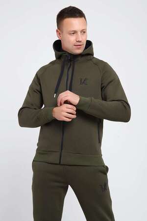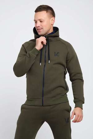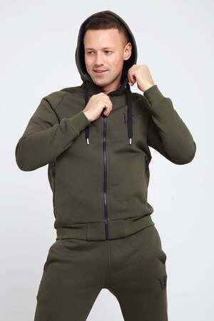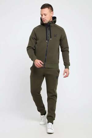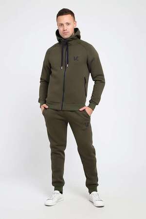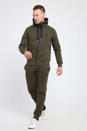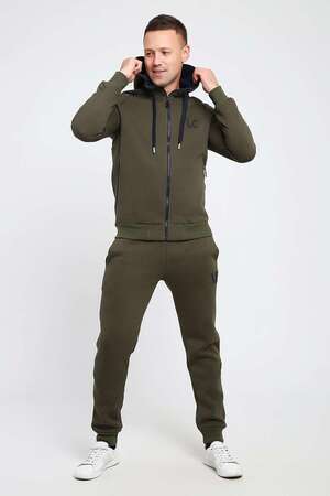 Мужской костюм изготовлен из качественного футера 3-нитки с начесом. Отличный зимний вариант спортивной одежды. Толстовка на молнии, с капюшоном, дополненным шнуром. Два глубоким прорезных кармана так же с молниями, украшенными пуллерами. На груди выполнена аккуратная вышивка-логотип. Так же текстовая вышивка расположена на рукаве. Брюки сзади на кокетке, что способствует удобной посадке. Карманы без молнии. Низ брюк на манжете.