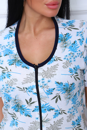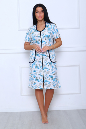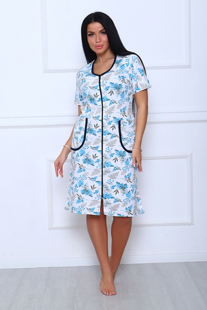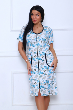Халат женский на молнии, средней длины, рукав короткий. Удобный женский халат из легкой хлопковой ткани, с двумя карманами. Общая длина приблизительно до коленей. Очень теплый и приятный к телу.