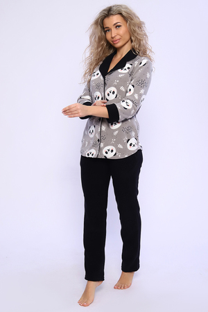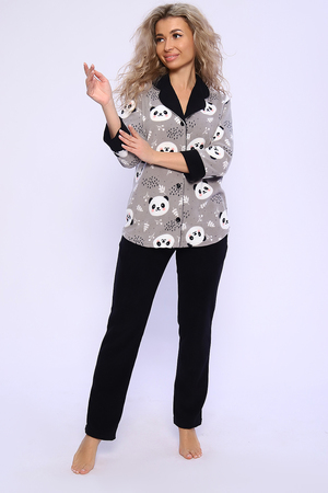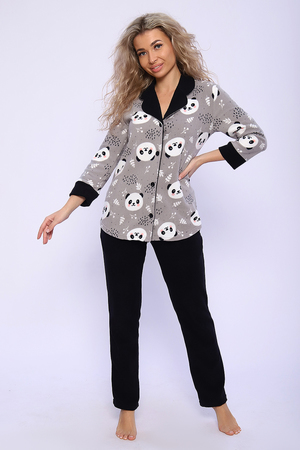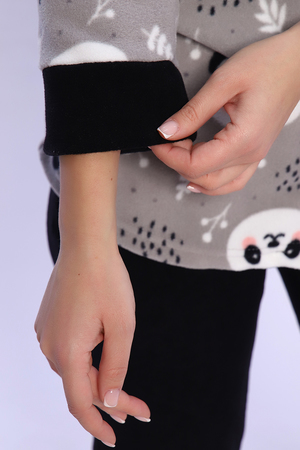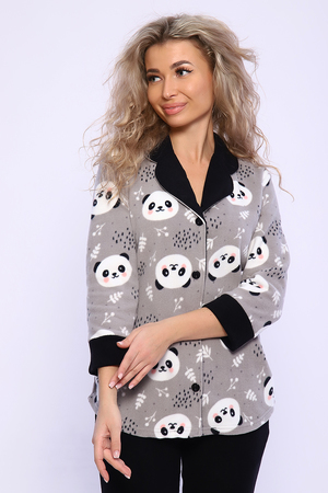 Домашний женский костюм из мягкой, нежной на ощупь и очень теплой флисовой ткани. Состоит из жакета на пуговицах с воротником пиджачного типа и приталенных брюк на широкой резинке, с боковыми карманами со скошенным входом. Рукав жакета втачной с манжетами в тон брюк и длиной 3/4, что делает костюм удобным при занятии домашними делами. Универсальный, удобный костюм-пижама подойдет для сна, для отдыха, занятий зимними видами спорта и просто прогулок на свежем воздухе. Удобный домашний комплект для женщин и девушек устойчив в процессе эксплуатации. Не садится, практически не мнется и не растягивается. Одежда для дома из флиса - нежная и воздушная, удобная и комфортная в использовании. Прекрасно подойдет для беременных и кормящих мам. Модель сшита размер в размер, поэтому любителям свободной одежды рекомендуем заказывать на размер больше.  Другие расцветки данной модели Вы можете найти в артикулах: 71084, 71051, 71049. Хороший подарок милым дамам на день рождения, 8 Марта, Новый год и по любому поводу!