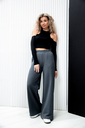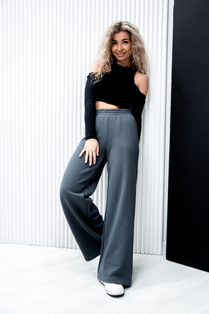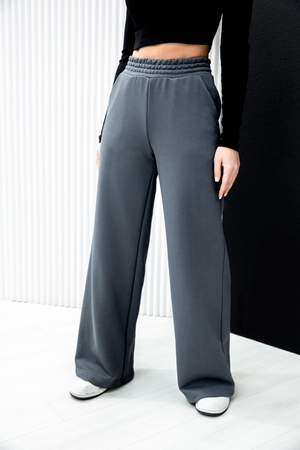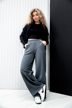 Стильные тёплые брюки ПАЛАЦЦО из футера трёхнитки-петля с карманами станут базовой вещью вашего гардероба, и могут использоваться в осенне-зимний период. Широкие элегантные брюки "в пол" с высокой посадкой создают подчёркнуто вытянутый утончённый силуэт. Длина изделия рассчитана на высокий рост. Задний шов усилен дополнительной строчкой, пояс изделия обработан на поясной машине, боковые карманы отстрочены по внутренней мешковине, что придаёт изделию аккуратный вид.