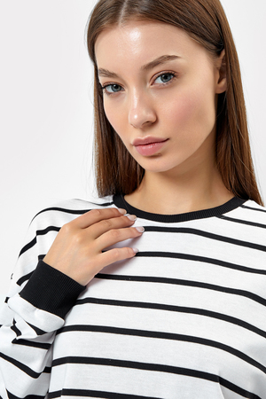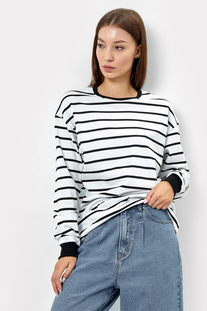 Джемпер женский из качественного хлопка, свободного силуэта. Вырез круглый, рукава длинные на манжетах. Спущенная линия плеча и углубленные проймы не сковывают движений. Отличный базовый вариант на каждый день.