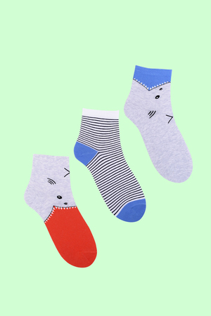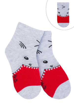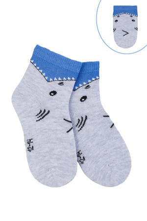 Носки с вязаными рисунком в виде акул и полосок для детей. В комплекте 3 пары с разным дизайном, по 1 каждого вида. Состав ткани: 80% х/б, 17% п/а, 3% эластан. Возможен заказ в розницу. Арт. НД284