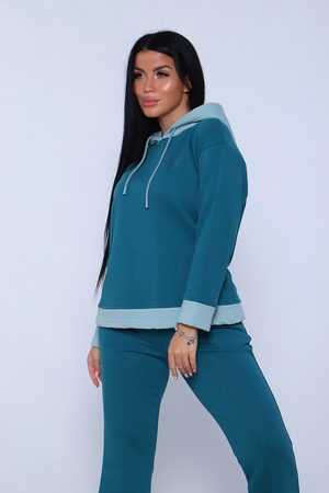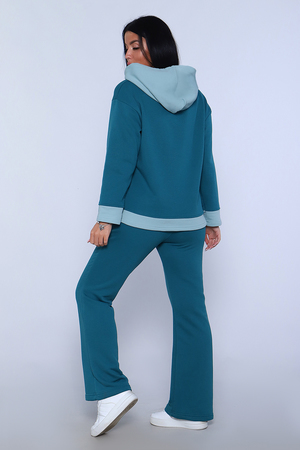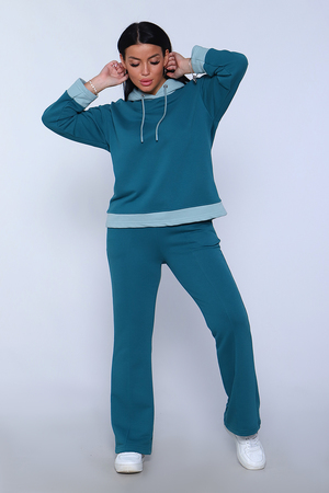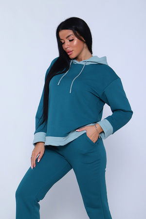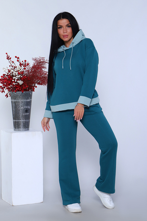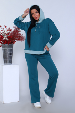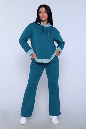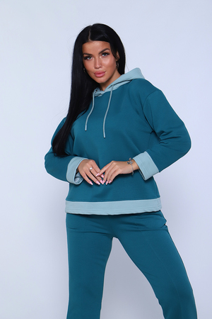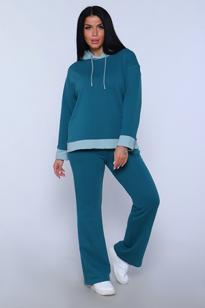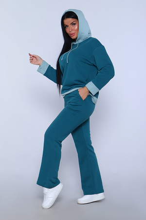 Элегантный женский костюм полуприлегающего силуэта, состоящий из худи и брюк сшит из трикотажного полотна премиум качества - футер 3-х нитка петля без начеса. Высокое качество ткани обеспечит комфорт и удобство на долгое время. Хлопковая изнаночная сторона изделия дарит комфортные ощущения при ношении костюма. Брюки силуэта клеш с широким поясом с декоративной отсрочкой и с отстроченной стрелкой на передней половине брюк, что "вытягивает" силуэт и визуально делает ноги длиннее, что добавляет женственности образу. В боковых швах брюк расположены карманы с отрезным бочком. Худи прямое, свободное с длинными рукавами. Низ рукава и низ худи отделаны декоративными манжетами контрастного цвета. Вырез горловины округлый, с двойным капюшоном контрастного цвета в тон манжет. Объём капюшона регулируется декоративным шнурком. Сочетание комфорта и стиля делает этот костюм модным и удобным для каждой девушки и женщины. Идеальный комплект обеспечивает удобную посадку на любую фигуру, позволяет свободно двигаться, гулять, отдыхать и заниматься спортом, благодаря тому, что костюм не сковывает движения. Базовые расцветки, прекрасно сочетающиеся цвета основной ткани и ткани - компаньона позволят подобрать тот костюм, который идеально соответствует вашему вкусу и предпочтениям. Стильный костюм подойдёт для любого времени года, на любую погоду. Удобный костюм подойдет как для домашнего, так и уличного ношения. Для беременных и молодых мам! Идеальный подарок прекрасным женщинам!