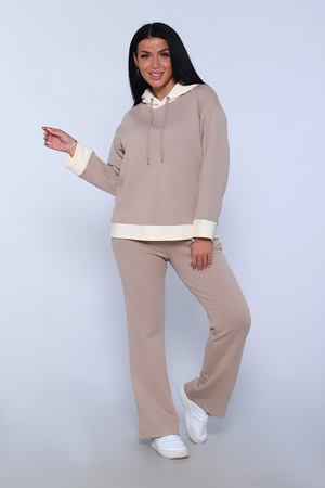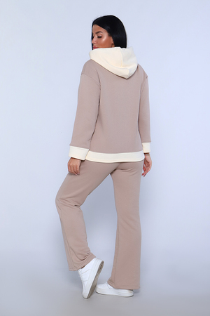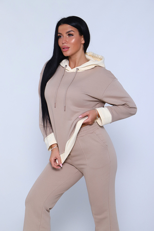 Элегантный женский костюм полуприлегающего силуэта, состоящий из худи и брюк сшит из трикотажного полотна премиум качества - футер 3-х нитка петля без начеса. Высокое качество ткани обеспечит комфорт и удобство на долгое время. Хлопковая изнаночная сторона изделия дарит комфортные ощущения при ношении костюма. Брюки силуэта клеш с широким поясом с декоративной отсрочкой и с отстроченной стрелкой на передней половине брюк, что "вытягивает" силуэт и визуально делает ноги длиннее, что добавляет женственности образу. В боковых швах брюк расположены карманы с отрезным бочком. Худи прямое, свободное с длинными рукавами. Низ рукава и низ худи отделаны декоративными манжетами контрастного цвета. Вырез горловины округлый, с двойным капюшоном контрастного цвета в тон манжет. Объём капюшона регулируется декоративным шнурком. Сочетание комфорта и стиля делает этот костюм модным и удобным для каждой девушки и женщины. Идеальный комплект обеспечивает удобную посадку на любую фигуру, позволяет свободно двигаться, гулять, отдыхать и заниматься спортом, благодаря тому, что костюм не сковывает движения. Базовые расцветки, прекрасно сочетающиеся цвета основной ткани и ткани - компаньона позволят подобрать тот костюм, который идеально соответствует вашему вкусу и предпочтениям. Стильный костюм подойдёт для любого времени года, на любую погоду. Удобный костюм подойдет как для домашнего, так и уличного ношения. Для беременных и молодых мам! Идеальный подарок прекрасным женщинам!
