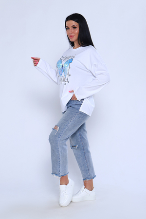 Женский лонгслив из кулирки 100% хлопок плотность 160г. с принтом и разрезами по бокам . Выполнения - модный и стильный выбор для современной девушки. Вариант как для повседневной носки.