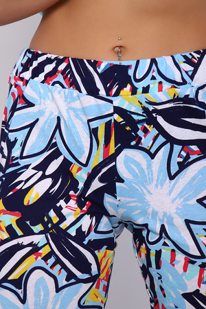 Костюм из хлопковой кулирки футболка с бриджами без карманов. Бриджи с ярким солнечным рисунком, футболка с принтом. Хорошо подходит в качестве домашней одежды женщинам всех возрастов.