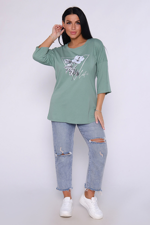 Туника из натурального хлопка прекрасный вариант для повседневного образа. Оригинальный принт с использованием глиттера украшает модель, придавая ей изысканный вид. Обработка деталей вкруговую с закрепкой, рукав длиной 3/4, горловина втачная из основной ткани. Большие размеры.