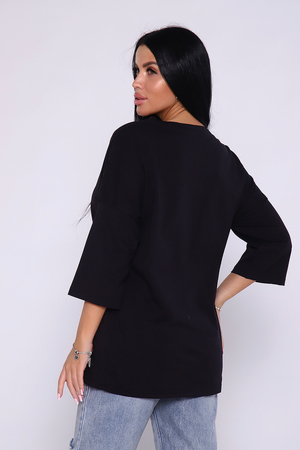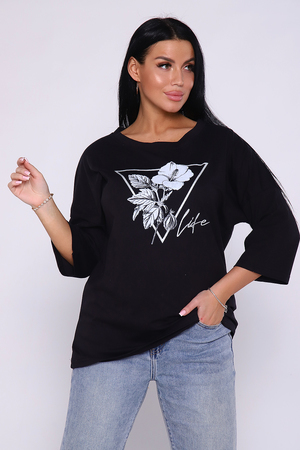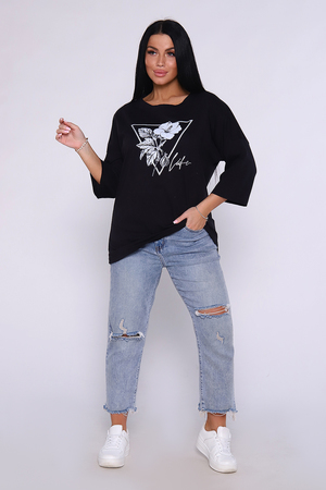 Туника из натурального хлопка прекрасный вариант для повседневного образа. Оригинальный принт с использованием глиттера украшает модель, придавая ей изысканный вид. Обработка деталей вкруговую с закрепкой, рукав длиной 3/4, горловина втачная из основной ткани. Большие размеры.