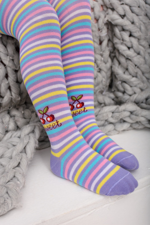 Колготки с вязаным рисунком в виде вишенок и цветных полосок для девочек