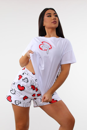 Изящная , нежная, романтическая пижама порадует вас. Футболка выполнена из трикотажного полотна кулирка ( хлопок 100%).  Шорты с поясом и боковыми карманами, изготовлены из футера 2-х нитки ( хлопок 100%).