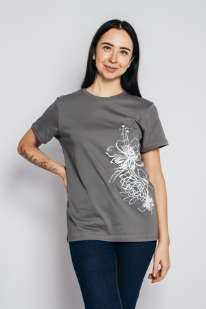 Футболка классического фасона, прямого кроя, с коротким рукавом и округлым вырезом с усилением горловины. Декорирована принтом - шелкография. Универсальная модель футболки отлично подойдет для любого образа и станет необходимой вещью в вашем гардеробе. Стильная женская футболка с принтом отличный подарок на День рождения. Посадка свободная, футболку будет удобно носить навыпуск или заправлять, отлично сочетается с юбкой, брюками с джинсами, а также можно одеть под пиджак, жакет или кардиган. Футболка выполнена из мягкого хлопкового полотна средней плотности приятного к телу. Ориентируйтесь при выборе на российские размеры, но, если предпочитаете более свободный крой, закажите на размер больше. Футболка будет хорошо сидеть на женщинах и девушках с любым типом фигуры. Стирать футболку с вещами похожего цвета и вынимать сразу после стирки. Гладить с изнаночной стороны. Модель рассчитана на рост 164-170 см.