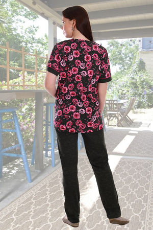 Костюм из кулирки брюки + кофта. Кофта с рельефами, на молнии, в рельефах карманы, кокетка и манжеты в тон брюк, отделка кантом. Брюки длиной до щиколоток, дизайн в мелкую горизонтальную черточку