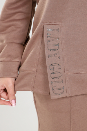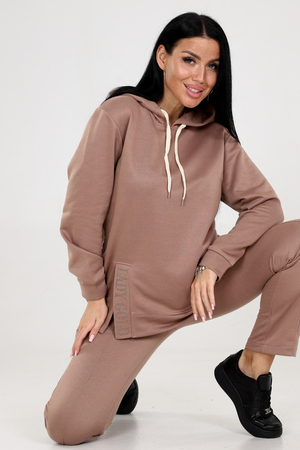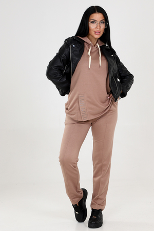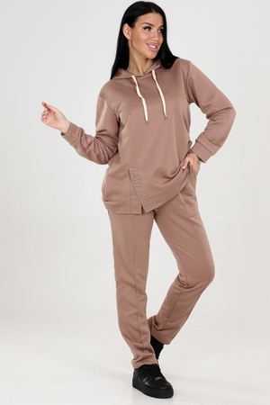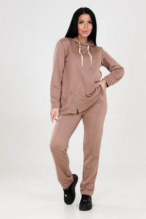 Туника с капюшоном. Разрез туники оформлен стразами, придающими блеск и привлекательность. Это прекрасная деталь, которая подчеркнет вашу индивидуальность и притянет взгляды окружающих. Брюки этого костюма оснащены резинкой, что обеспечивает идеальную посадку и комфорт в носке. Вы будете ощущать себя уверенно и свободно, благодаря оптимальной посадке брюк.