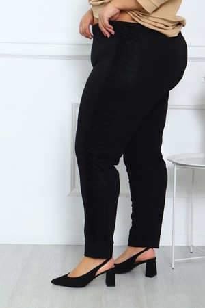 Модель полуприлегающего силуэта со вставками по бокам, низ на широком манжете, основная ткань-креп, вставка из эко-кожи. Брюки изготовлены из трикотажной ткани , которая хорошо тянется, удобна в носке, выдерживает многократные стирки. Замечательно сочетаются с любым верхом и обувью, подойдут и к классическому стилю, и к спортивному.