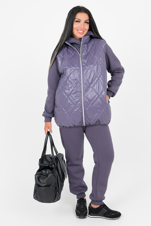 Стильный жилет из стеганой курточной ткани - базовая вещь в гардеробе современной женщины. Жилет подойдет на демисезонный период, прохладное лето и теплую зиму. Застежка - молния. Проймы и низ жилета обшиты окантовочной резинкой. Воротник - стойка.