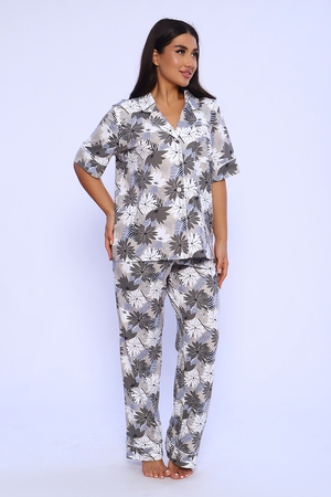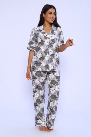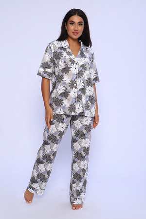Женская, стильная пижама - домашний комплект с брюками, состоит из 100% хлопка, который позволяет вашей коже дышать, не стесняет движения из-за мягкости ткани. Эта модель подойдет для всех типов фигур и телосложений. Комплект состоит из брюк и рубашки с коротким рукавом отделанным атласной лентой - эта пижама для женщин, девочек и подростков, беременных и кормящих мам. Домашний костюм в котором вы будете стильной и современной !