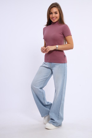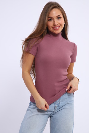 Водолазка женская с коротким рукавом, приталенная из кашкорсе. Воротник стойка, рукава и низ изделия подогнуты на плоскошовной машине. Легкая в уходе. Идеальный вариант для повседневной носки.