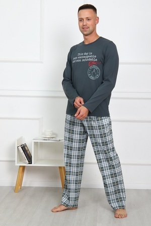Пижама мужская "Лондон-2": лонгслив с тематической печатью на груди, брюки прямые с двумя боковыми комфортными карманами. Удобный комплект в стильной расцветке создаст ежедневный позитивный настрой.