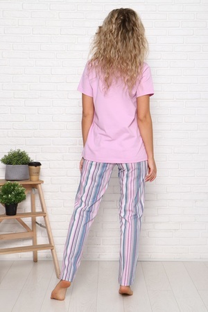 Пижама женская "Донат" - футболка классическая с короткими рукавами, с аппетитной печатью и стильные полосатые брюки зауженные с карманами.