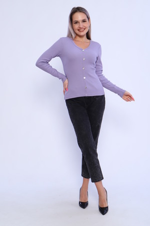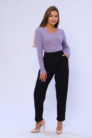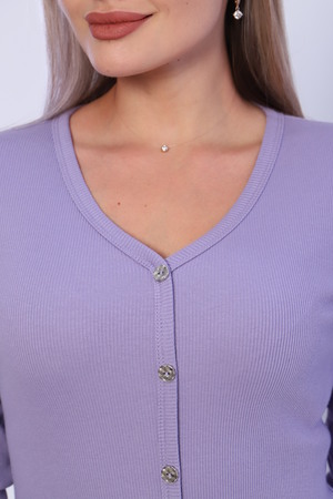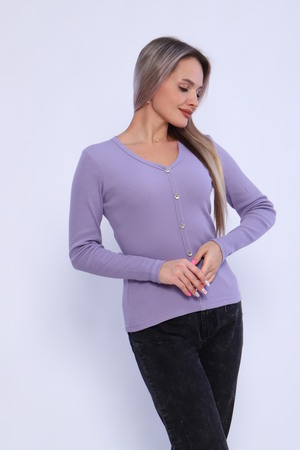 Лонгслив женский приталенный из кашкорсе с декоративными пуговицами (лонгслив не расстёгивается). Ворот V-образный, обработан окантовкой, переходящей вниз вдоль изделия, рукава и низ изделия подогнуты на плоскошовной машине. Легкий в уходе. Идеальный вариант для повседневной носки.