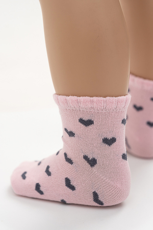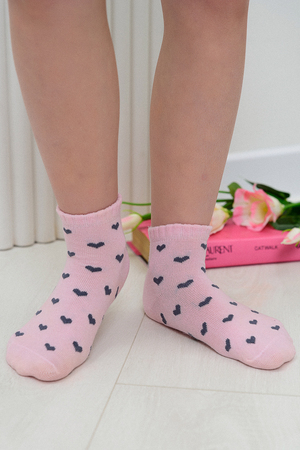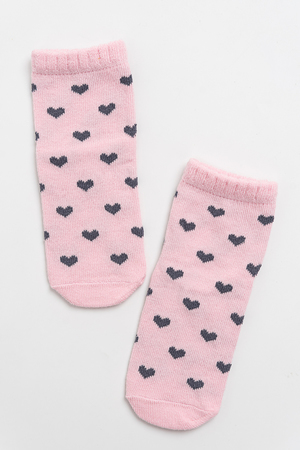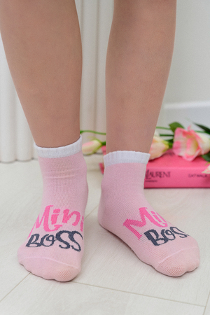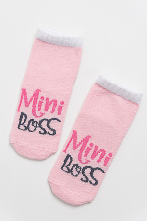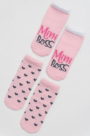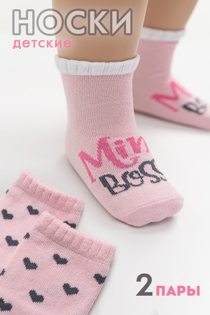 Комплект очаровательных носочков для детей. В наборе 2 пары. На одной паре по всему носочку узор сердечки. На другой паре надпись Mini boss.