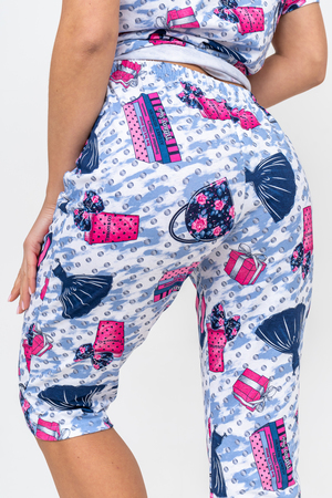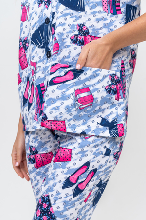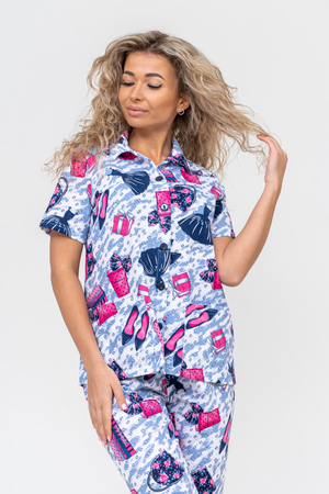 Женская пижама - это идеальная одежда свободного покроя для дома. Состоит из 100% хлопка, не скатывается и сохраняет форму и цвет после множества стирок.  Наша модная пижама с бриджами отлично подходит как белье для сна, повседневной носки или фотосессии. Набор двойка выполнен из верха рубашечного плана с воротником, планкой на пуговицах, двумя накладными карманами и бриджами на резинке. Лето, Весна, Осень, Зима - каждый день будет окутан уютом. Удобный трикотажный  пижамный костюм предоставит вам крепкий комфортный сон и молодежный стильный вид. Если предпочитаете оверсайз (oversize), то возьмите на размер больше. Наша домашняя одежда прекрасно смотрится на стройных и на полных, на высоких и на миниатюрных. Также данный костюм с бриджами подойдет и для беременных на ранних сроках. Вы можете заказать стильный и приятный новогодний подарок в виде пижамы: жене, для мамы, дочки, девушки, девочки подростка, любимой, для сестры, подруги или бабушки. Вы можете сделать сюрприз на любой праздник: на Новый Год, Рождество, 8 марта, День Святого Валентина, День Матери, День Рождения. И будьте уверены, что она станет вашим любимым элементом гардероба!