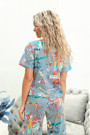 Домашний комплект с брюками - кюлотами и футболкой. Брюки с карманами. Длина 7/8. Футболка с коротким рукавом прямого силуэта.