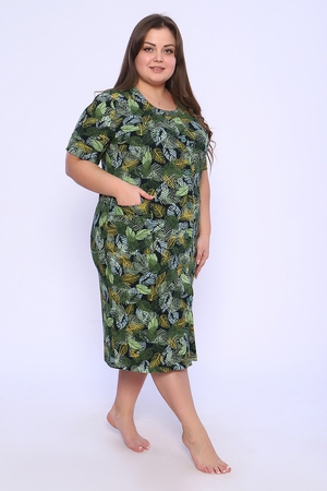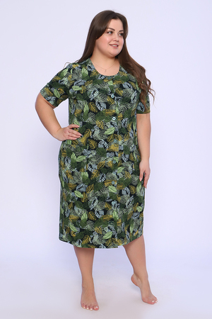 Домашний женский халат, классического кроя округлым вырезом, на пуговицах. Халат изготовлен из качественного кулирного полотна 100% хлопок. Есть два накладных кармана, рукав на манжете. Свободный, полуприлегающий силуэт прекрасно подчеркнет вашу фигуру.