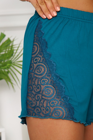 Представляем вам модную, стильную и сексуальную женскую пижаму с шортами и топом, прекрасно подходящую для домашнего отдыха. Эта одежда для дома выполнена из мягкого и комфортного трикотажного материала, который приятен к телу. Благодаря использованию кружева, она приобретает эстетичный элегантный и женственный вид. Пижамный кружевной костюм предлагается в различных размерах, включая большие для полных и беременных и кормящих грудью девушек, плюс подойдёт для высоких и невысоких женщин. Майка с коротким рукавом вместе с секси шортики на резинке хорошо садятся по фигуре и создают необычный легкий и шикарный наряд. Молодёжную пижамку можно носить не только для сна, но и в повседневной жизни. Она идеально пригодиться для фотосессии, роддома или просто, чтобы порадовать себя. Нарядная двойка создаст эротическую атмосферу, подчеркивая вашу красоту и уверенность. Изготовлено это ночное белье на высшем уровне от ивановских производителей, обеспечивая долговечность и уют. Добавьте стиль и элегантность в свой гардероб с этим нежным красивым и милым набором.