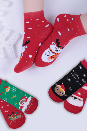 Эти носки станут настоящим подарком от Деда Мороза для ваших маленьких эльфов. С удивительными изображениями снеговика, Санты, оленя и эльфа на носках, каждый день ваш ребенок будет встречать веселых персонажей праздничного сезона. Яркие цвета и разнообразные рисунки создадут атмосферу веселья и волшебства.