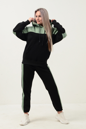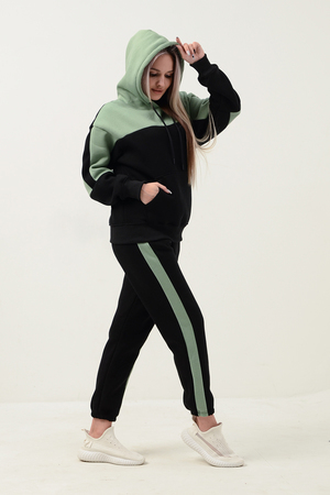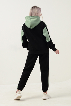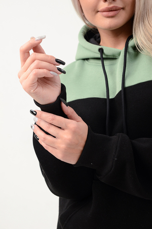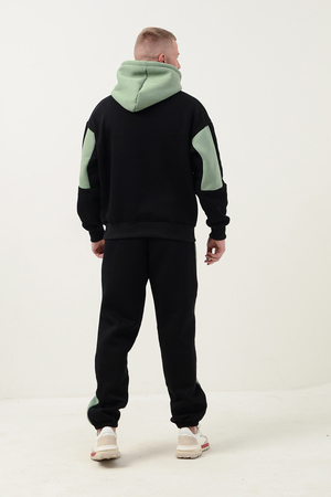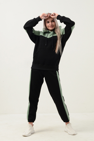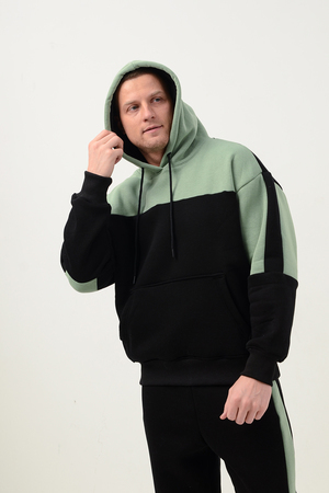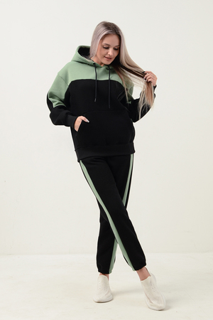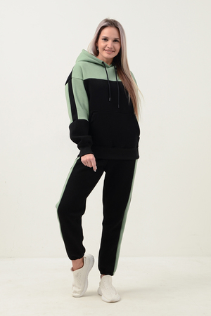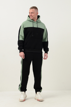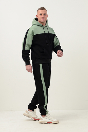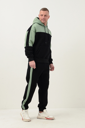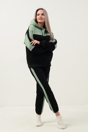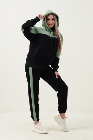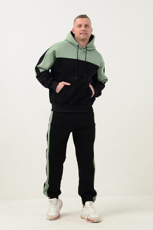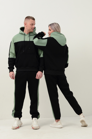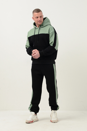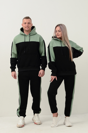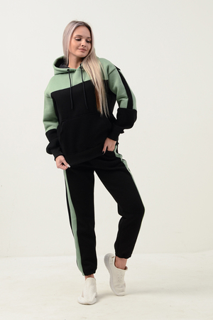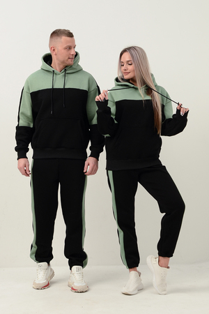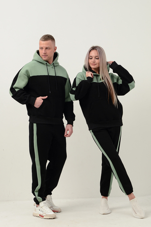 Стильный костюм из футера 3-х нитки. Костюм выполнен из мягкого хлопка с лицевой стороны и начесом с изнанки. Костюм состоит из двух вещей: худи с капюшоном с карманом кенгуру и брюки джоггер на резинке с прорезными карманами.