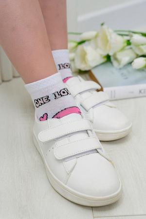 Детские носочки с нежным принтом и милой надписью. Нежные цвета создают невероятно милую изящную модель. Благодаря натуральной основе из высококачественного хлопка в носочках комфортно на протяжении дня, ножки ребёнка дышат.
