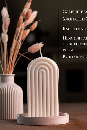 Свеча декоративная из Соевого воска с хлопковым фитильком – интерьерная фигурная свеча высотой 12 см. Свеча Гармония- это стиль и эстетика, эксклюзивный дизайн весом 220 гр. Изделие обладает кремовым оттенком , бархатной текстурой и нежным ароматом свежесрезанной розы. Прекрасно впишется в любое пространство и наполнит его теплом и уютом.