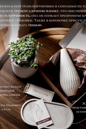 Полный комплект из Соевой арома-свечи, спичек, подставки это отличный подарок. Мы продумали все за Вас