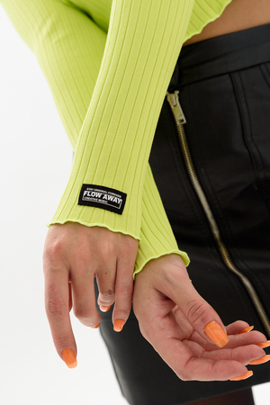 Стильный кроп-топ с длинным рукавом, имеющий фактуру в рубчик - это женский супер хит сезона! Необычный, короткий топик прилегающего кроя выполнен из мягкой, приятной к телу трикотажной ткани лапша. Молодежная модель топа прекрасно впишется в гардероб и поможет создать множество стильных образов. Топ сочетается с одеждой в спортивном, офисном и праздничном стилях. Модный кроп-топ носите с юбкой, джинсами, спортивными брюками. Ткань обладает хорошей растяжимостью.