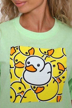 Туника женская свободного кроя, средней длины, короткий рукав, с весёлой печатью на полочке. Комфорт 100%-ого хлопка.