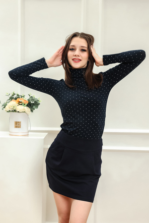 Водолазка с высоким воротником гольф. Модель прямого кроя мягко очерчивает фигуру. Высокий ворот защищает шею от проникновения холодного воздуха.