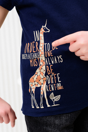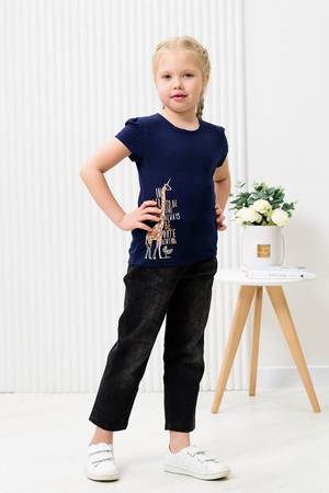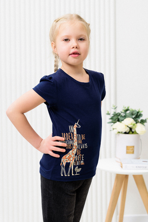 M124 футболка для девочки, их хлопкового полотна кулирка. На нижней части принт в виде жирафа.