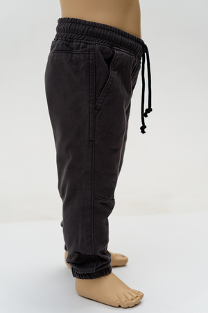 Модные серые брюки для мальчика выполнены из натурального 100% хлопка. По низу брючин расположены манжеты. В поясе вставлена эластичная резинка с контрастным функциональным шнурком. Модель дополнена карманами по бокам.