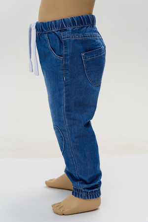 Джинсы из мягкого денима. Внутри эластичный пояс и функциональный шнур. На коленях декоративные элементы.