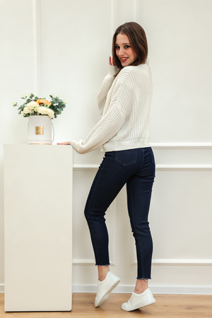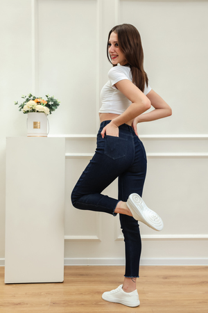 Женские джинсы из плотной ткани с добавлением полиэстера для прочности и долговечности. Производство Узбекистан.