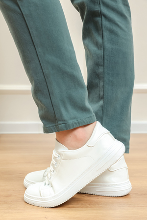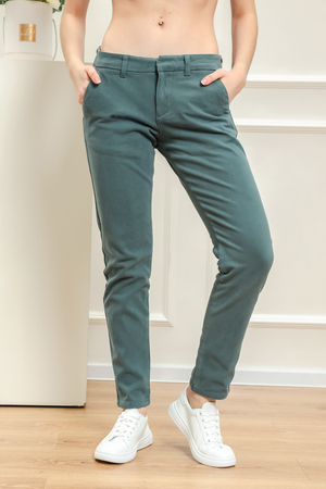 Женские брюки выполнены из плотной хлопковой ткани с добавлением полиэстера для прочности и долговечности. Производство Узбекистан