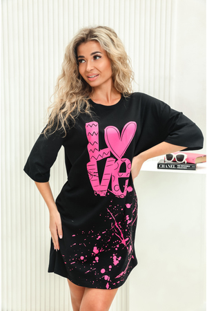 Туника женская Oversize с интересным принтом для дома и сна, свободная , прямая , классическая из хлопка, незаменимая и удобная повседневная одежда .Ткань кулирка пенье, плотность 160 г.