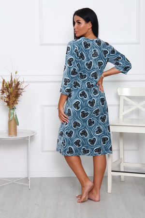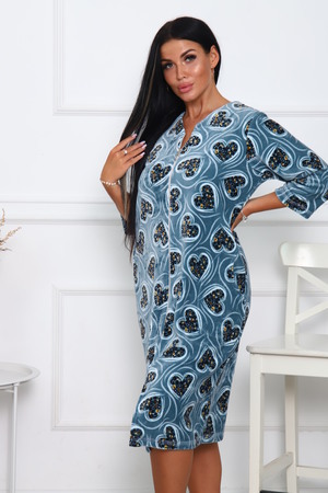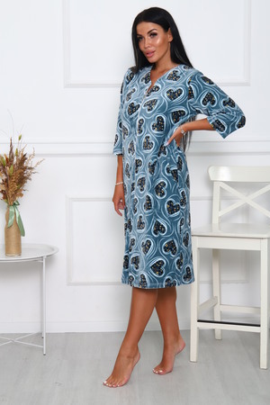 Халат женский на молнии из набивного велюра полуприлегающего силуэта. Горловина халата имеет V-образный вырез, обработана обтачкой, рукав 3/4, карманы. Халат прекрасно подойдет для дома и отдыха.