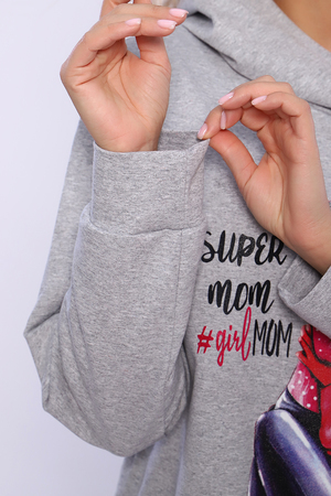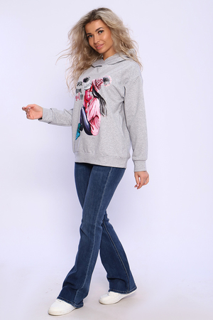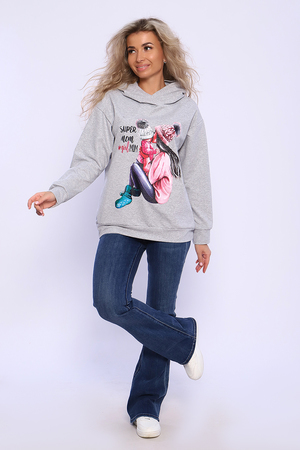 Молодежная толстовка с ярким принтом и капюшоном. По боковому шву карман. Рукав спущенный, на манжете. Благодаря свободному крою замечательно подойдет к любой фигуре.