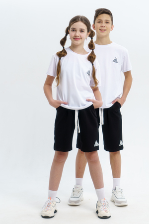 Шорты для мальчика и девочки прямого кроя с удобной посадкой на талии. У модели карманы в боковых швах. Пояс на резинке. Подойдут для занятия спортом и для прогулок.