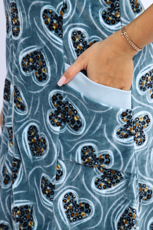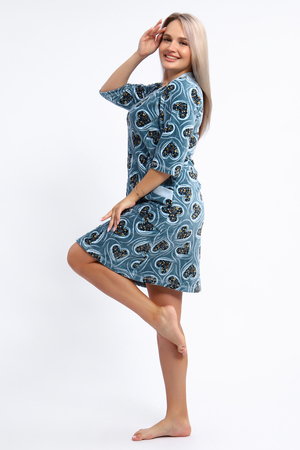 Халат женский на серебристой молнии выполнен из набивного велюра. Халат с рукавом 3/4, головина и карманы отделаны тканью контрастного цвета. Халат идеально подойдет для дома и отдыха.
