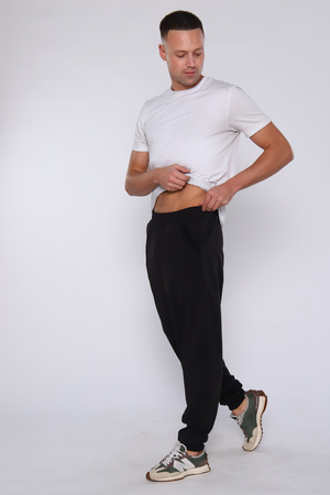 Мужские брюки выполнены из утеплённого стрейчевого трикотажного материала - это идеальный вариант для людей любящих спорт, удобство и комфорт. Материал, содержащий вискозу, полиэстер и хлопок имеет большое количество плюсов в эксплуатации. Он очень прочный, даже в мокром состоянии волокна ткани противостоят разрывам. Он устойчив к износу высоких температур и воздействиям кислот и слабых щелочей. Не выгорает на солнце, поэтому вещи из такого материала остаются яркими на долгие годы. Не деформируется при стирке, а также сохраняет форму при носке, не требует особого ухода. Не пилингуется даже при активной носке. А добавление в состав ткани эластана позволяет изделию легко растягиваться и возвращаться в прежнюю форму. Полотно эластичное и очень приятное на ощупь с обеих сторон. Брюки подходят для занятия спортом, отдыха, работы, учёбы и повседневной носки. Комфорт при носке придаёт эластичный пояс, выполненный на специализированной машине, удобные вместительные боковые карманы и низ брюк, обработанные рибаной. А также качество материала: мягкость и эластичность, устойчивость к растяжке в области коленей, не мнётся, приятен к телу и обладает хорошей износостойкостью. Брюки такого плана идеально сядут на любой тип фигуры и помогут создать по-настоящему модный образ.