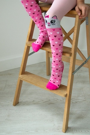 Колготки с вязаным рисунком в виде сердечек и кошачьих мордочек для детей