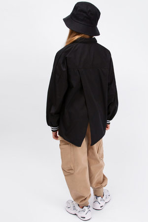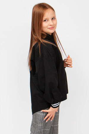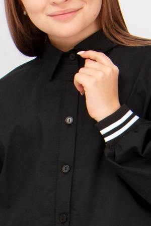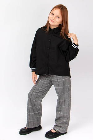 Блузка оверсайз для девочек и подростков на пуговицах. Удлиненная спинка, плечо приспущено, рукава заканчиваются трикотажной манжетой. Блузка прекрасно сочетается как с брюками, так и с юбкой, подчеркнет индивидуальный стиль девочки, и разнообразит ее повседневный школьный образ.